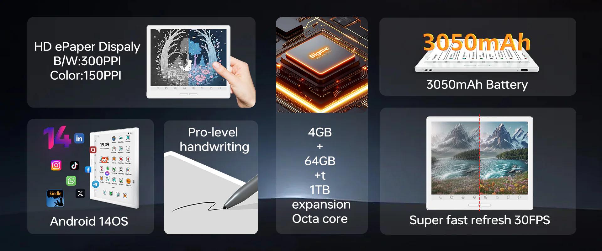 • Ample Storage and Long Battery Life: Equipped with 4GB of RAM and 64GB of internal storage, which is expandable by up to 1TB via a TF card, you have plenty of space for your entire ebook, document, and media library.The substantial 3050mAh battery provides exceptional endurance, allowing you to read for weeks on a single charge.