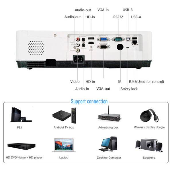 Supports 30”–300” projection, ideal for presentations, lectures, and training.