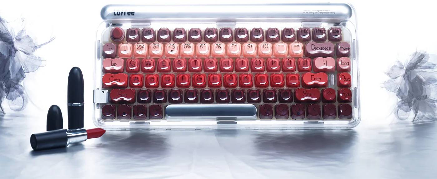 Wrapped in a frosted transparent shell, Lipstick mechanical keyboard radiates clarity and charm. It lets each lipstick-inspired keycap shine through like jewelry on display.