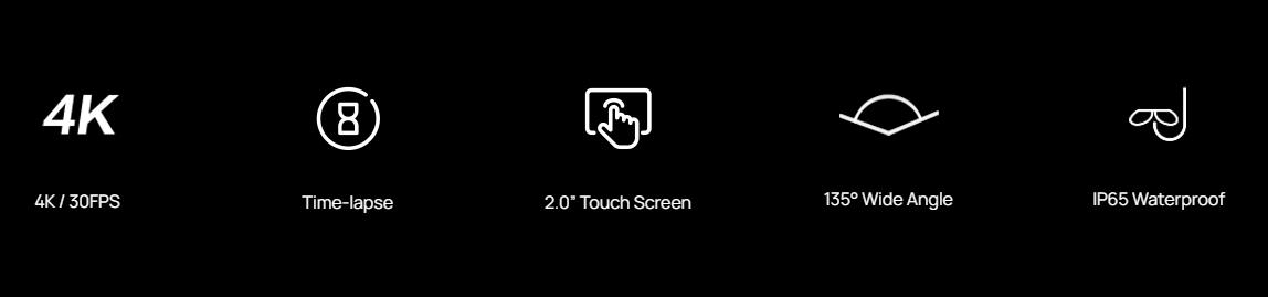 Video Resolution 4K 30FPS 2K 30FPS 1080P 30FPS 720P 30FPS WVGA 30FPS VGA 30FPS