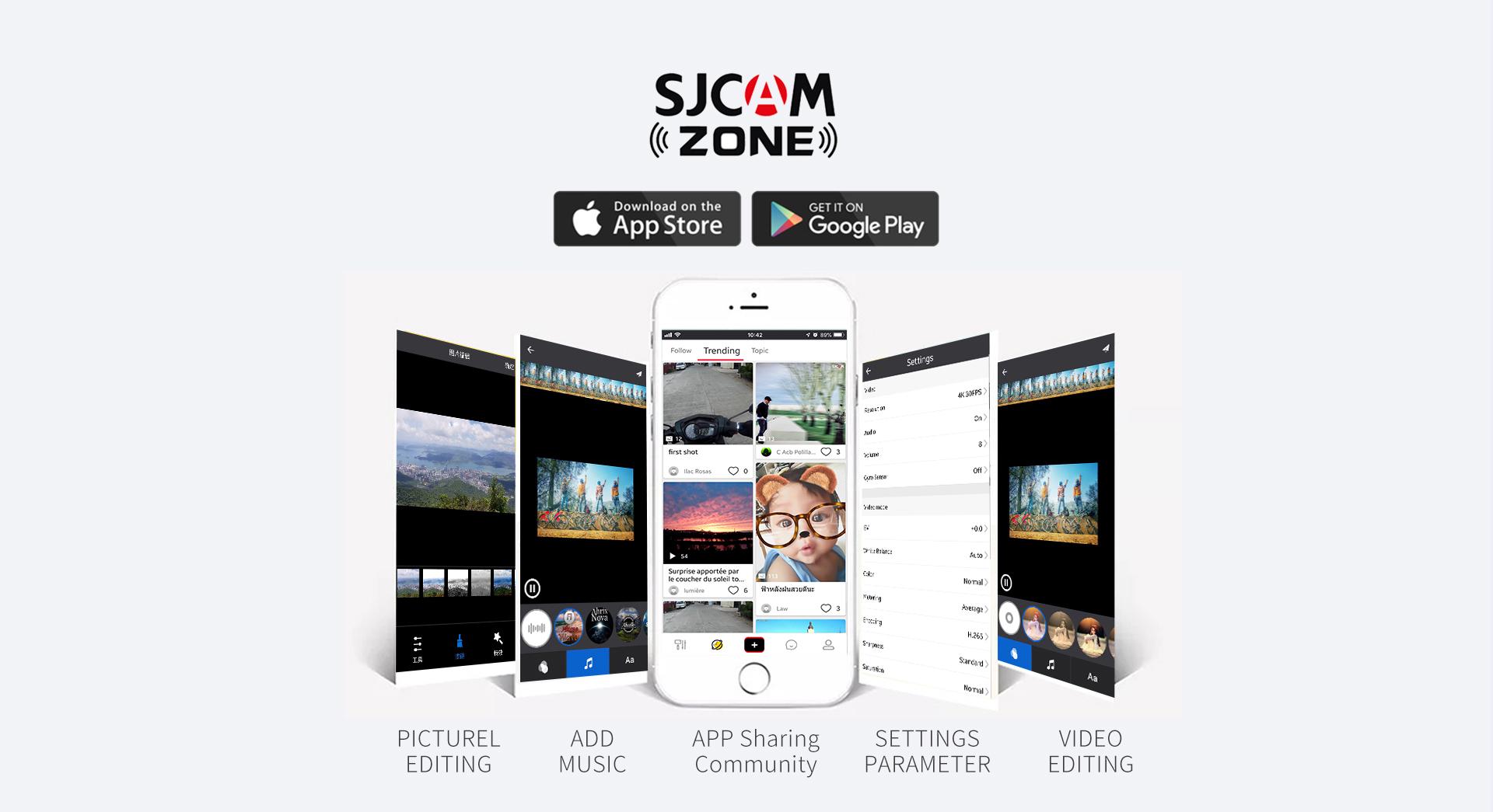The SJCAM Zone app lets you browse and download videos using Wi-Fi. It also has tools for professional video and photo editing. You can even share it with the SJCAM community with one click to share the excitement with more people.