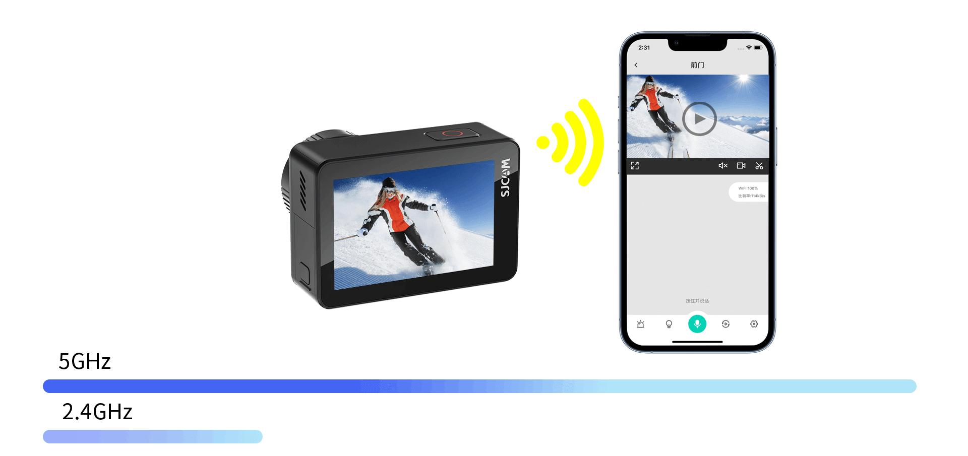 With dual-mode Wi-Fi, the 5 GHz Wi-Fi is 4 times faster than the 2.4 GHz Wi-Fi. It can download a 100M video in under 10s, giving you more time to capture happy moments!
