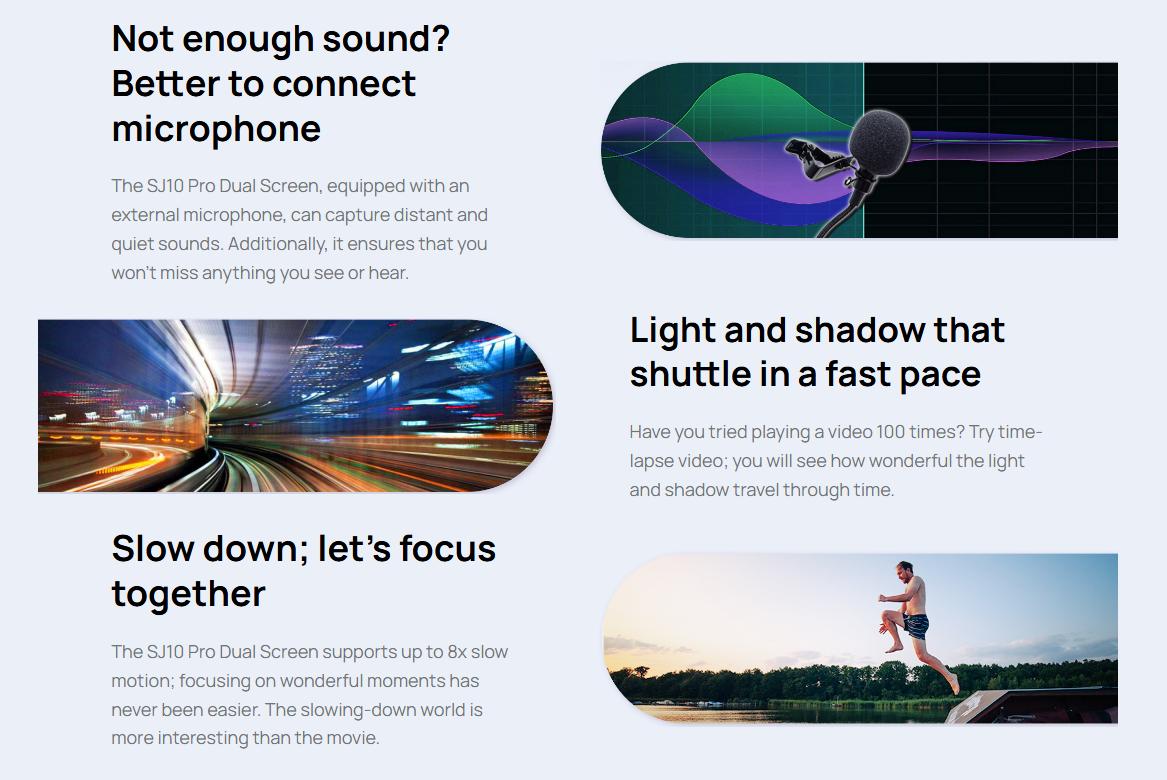 The SJ10 Pro Dual Screen has various color modes, allowing easy color switching and instantly adding vibrancy to dull scenes.