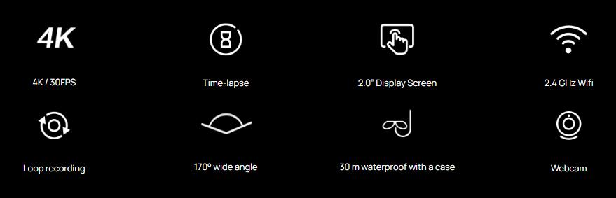 | Video Resolution | 4K 30FPS 2.7K 30FPS 1080P 60/30 FPS 720P 120/60/30 FPS |