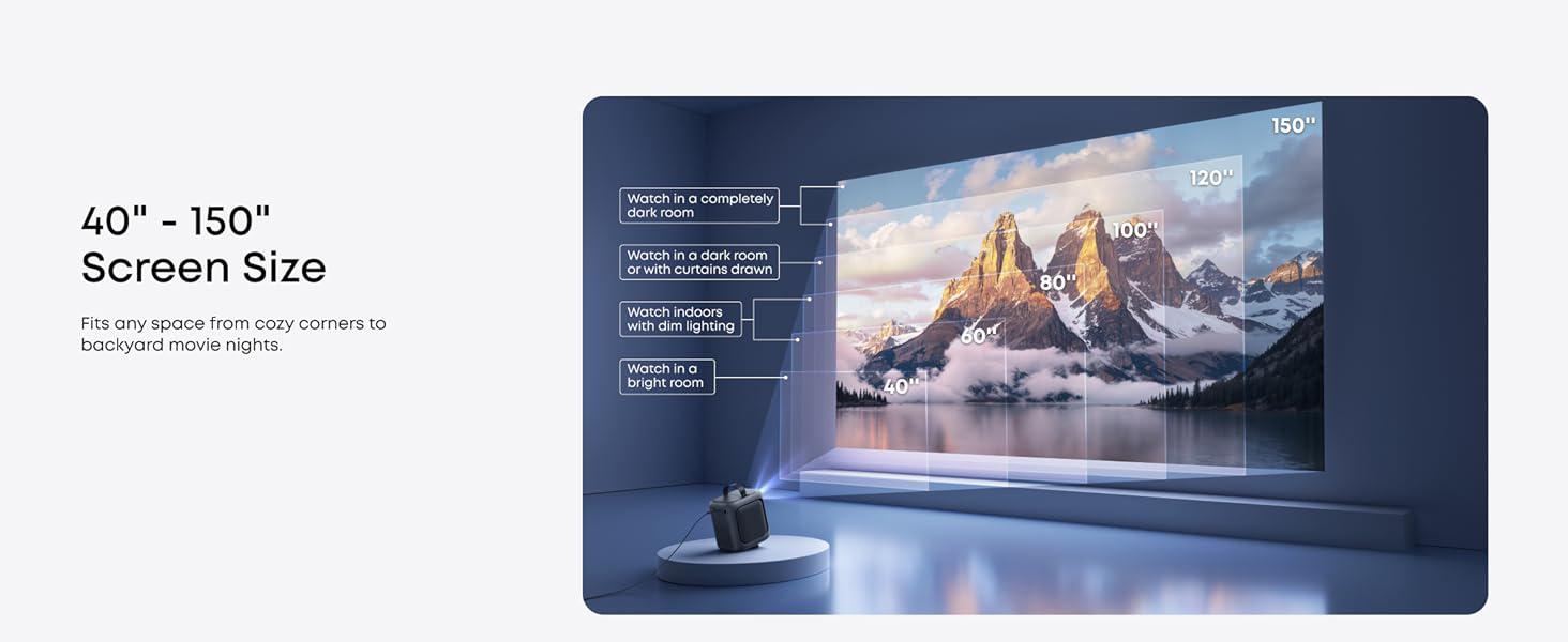 - Screen Size: Up to 120"